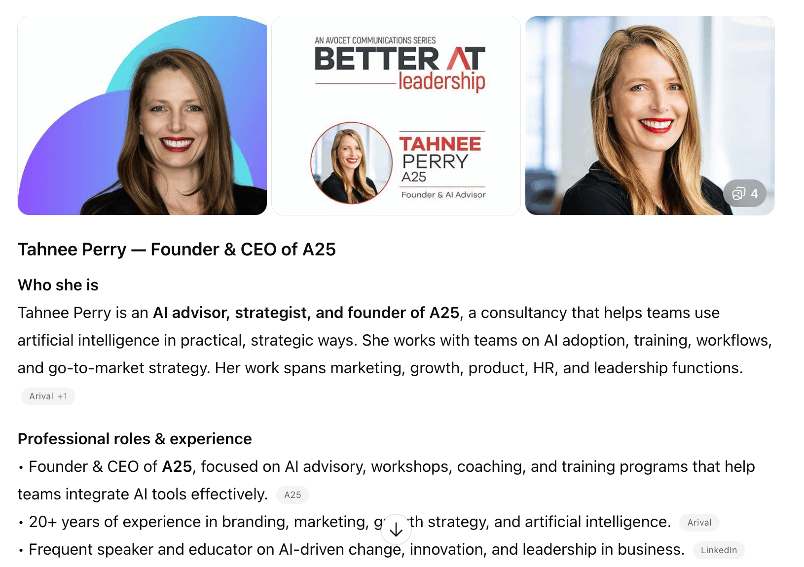 As the image below shows, ChatGPT did reference my LinkedIn profile, but LinkedIn accounted for only four of the sixteen total sources used.