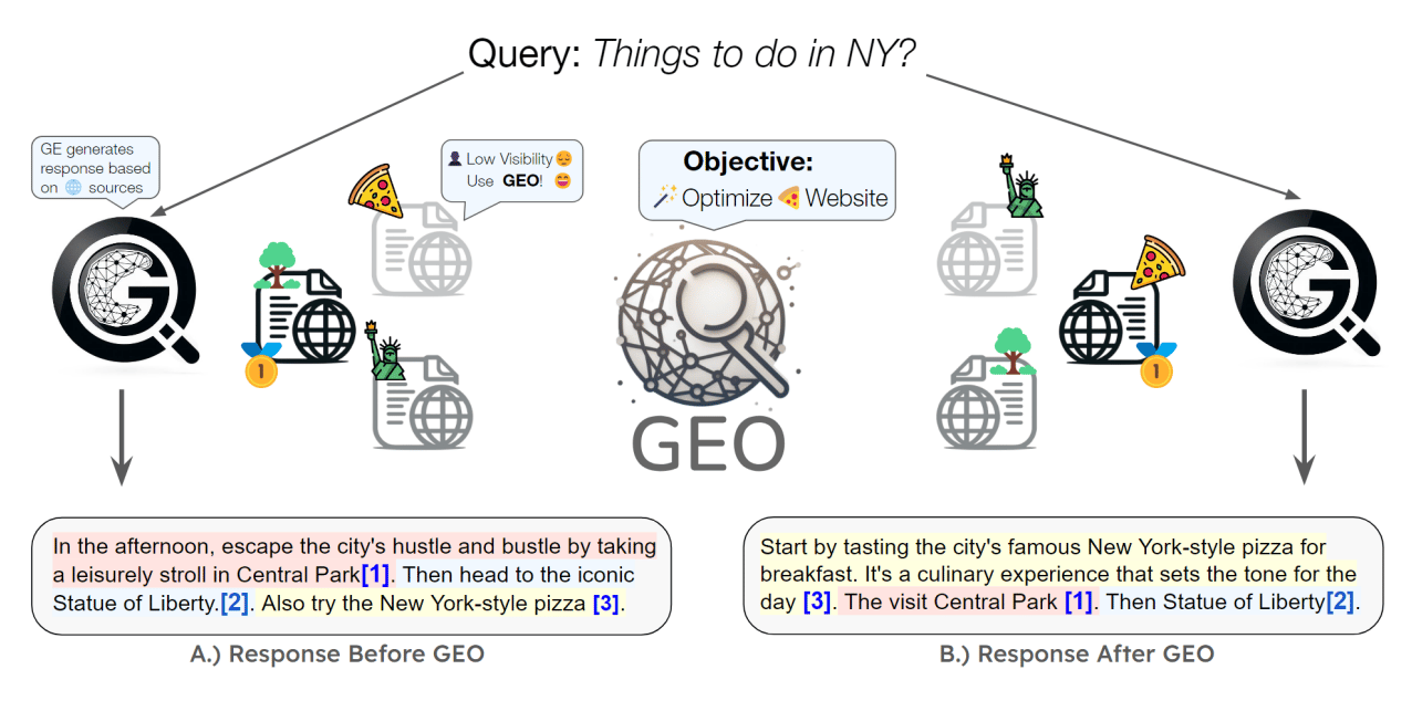 In their experiments, pages that included quantitative facts, clear comparisons, and verifiable claims surfaced more frequently in AI-generated responses than pages written in broad or purely descriptive language.