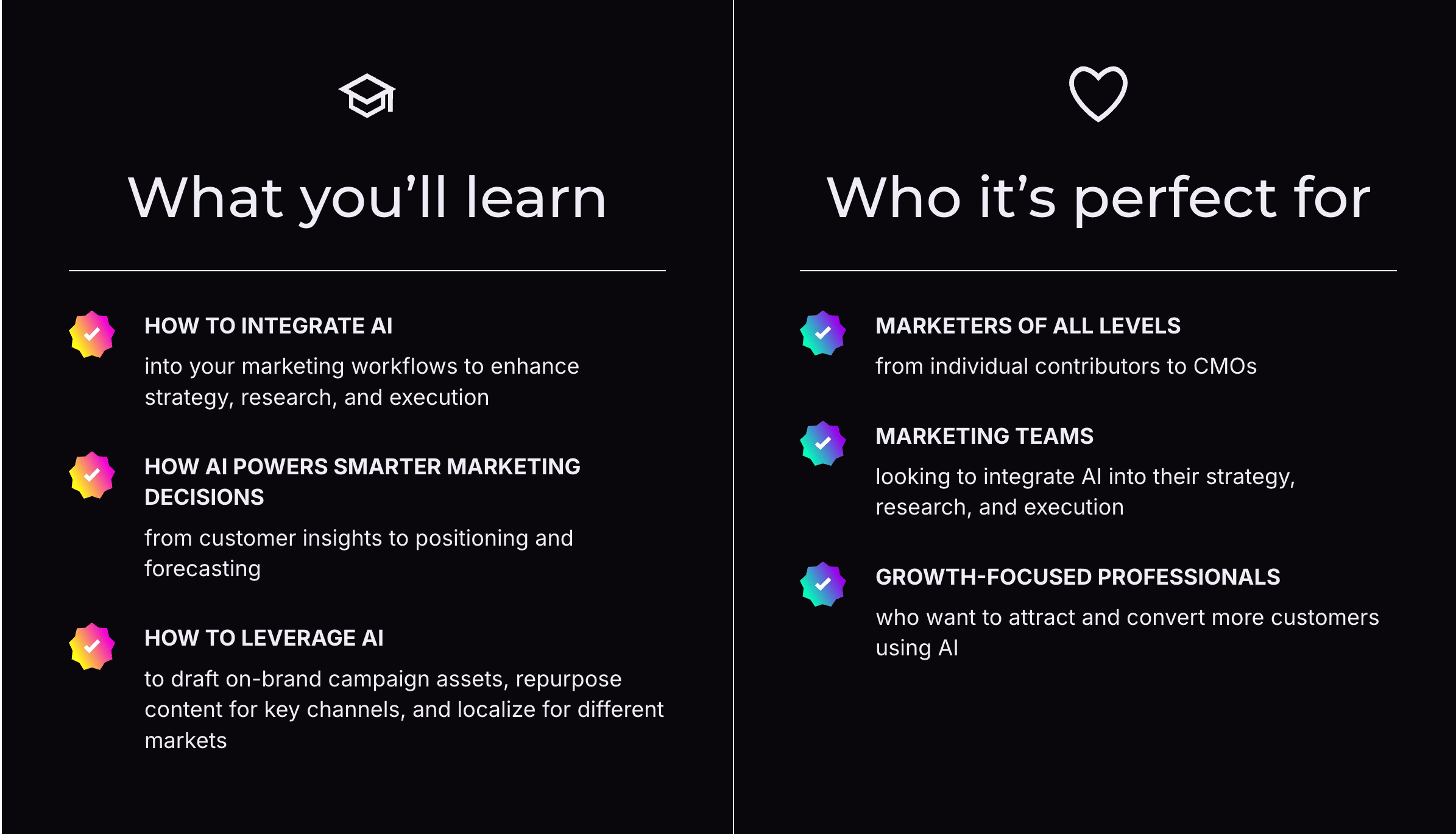 It’s a practical workshop focused on how AI supports strategic marketing initiatives, content creation and campaign execution — without compromising judgment, brand or governance.